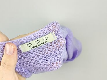 W serekFioletowy sweter damski o luźnym kroju, wykonany z lekkiego, ażurowego materiału, idealny na cieplejsze dni. Charakteryzuje się szerokim dekoltem w łódkę oraz rękawami o długości 3/4, które posiadają delikatną, prążkowaną strukturę. Sweter ten to wygodny element garderoby, który sprawdzi się zarówno w codziennych stylizacjach, jak i na specjalne okazje. Wyprodukowany we Włoszech, co może świadczyć o dbałości o detale i jakość wykonania.
