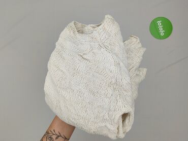 Ażurowy sweter damski – ecru/krem - Fason: luźny, prosty krój z długim rękawem - Dekolt: okrągły - Splot: ażurowa, przewiewna dzianina z widoczną strukturą oczek (idealny na warstwę na top lub kos...