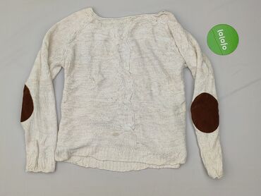 Sweter damski, dzianinowy, w kolorze ecru/kremowym. - Krój: klasyczny, delikatnie luźny, rękaw raglan - Dekolt: okrągły - Rękawy: długie, zakończone ściągaczami - Dół: prosty z delikatnym ściągacz...