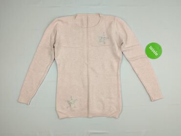 Damski sweter dzianinowy w kolorze intensywnego różu z subtelnymi, połyskującymi aplikacjami (drobne dżety) na całej powierzchni przodu i rękawów. Klasyczny krój z okrągłym dekoltem, długimi rękawa...Stan: