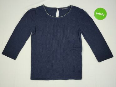 Sweter/bluzka damska Promod - Kolor: granatowy z dołem w biało‑złoto‑granatowy wzór (imitacja warstwy koszulowej) - Krój: luźniejszy, z obniżoną linią ramion; okrągły dekolt - Rękawy: około 3/4, z...