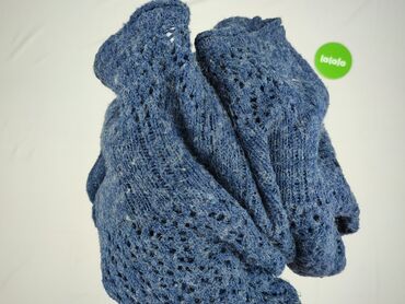 Sweter damski, dzianinowy, wykonany we Włoszech. - Kolor: jasny błękit z białymi ściągaczami (rękawy i dół). - Krój: luźny, obniżona linia ramion, półgolf/krótka stójka. - Dzianina o wyraźnym spl...
