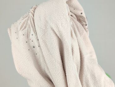 Sweter damski o luźno pętelkowej, „włochatej” fakturze w kolorze jasnego beżu/ecru. - Krój: klasyczny, prosty, z długim rękawem - Dekolt: okrągły - Dzianina: miękka, lekko puszysta, ażurowo‑p...