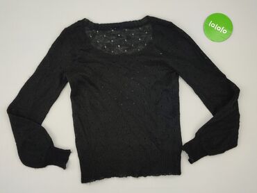 Czarny sweter damski z długim rękawem - Klasyczny krój z okrągłym dekoltem - Delikatna, cienka dzianina - Dopasowana sylwetka, ściągacze u dołu i przy mankietach - Naszyte łaty na łokciach w tym s...Stan: