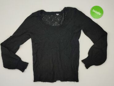 Sweter damski ebelieve, rozmiar S/M - Kolor: czarny - Krój: luźny, z obniżoną linią ramion (nietoperz/dolman), okrągły dekolt - Wykończenie: dekoracyjna, kontrastowa lamówka w kolorze białym przy ...