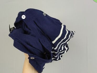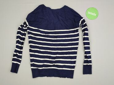 Sweter damski Esmara, ażurowy - Fason: sweter z długim rękawem, okrągły dekolt - Wzór: pasy granatowo‑białe; górna część ażurowa w jednolitym granacie - Splot: przewiewny, szydełkowy/siateczkowy; ...
