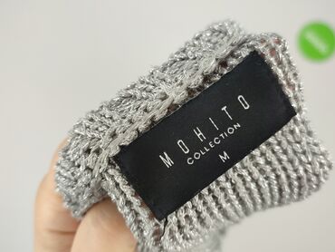 Sweter damski Mohito Collection, rozmiar M. - Kolor: srebrzysty/szary z metaliczną nitką, delikatnie połyskujący - Splot: luźny, ażurowy, średniej grubości - Fason: prosta, lekko oversize’owa lini...Stan: