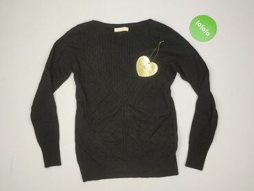 Czarny sweter/bluzka damska z dzianiny - Fason: luźny, z obniżoną linią ramion, delikatnie dopasowany w talii - Rękawy: długie, zakończone krótkim rozcięciem przy mankiecie - Dekolt: łódka - Detal...