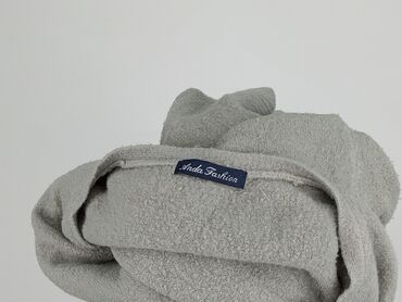 Szary, lekki szal/apaszka z dzianiny - Kolor: jasnoszary melanż - Materiał: cienka, miękka dzianina (przyjemna w dotyku, elastyczna) - Krój: bardzo długi i szeroki pas tkaniny z wykończeniami w fo...