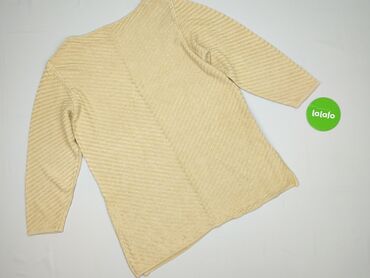 Sweter damski z dzianiny, kolor jasny beż/ecru. - Fason: klasyczny, z długim rękawem i półokrągłym dekoltem. - Dół lekko zaokrąglony (tył nieco dłuższy), ściągacze przy rękawach i u dołu. - Splot:...