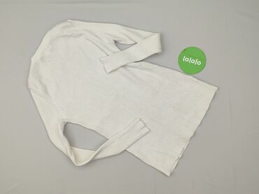 Biała, cienka bluzka/sweterek z długim rękawem. - Krój: prosty, dopasowany, okrągły dekolt - Rękawy: długie z wąskimi mankietami - Dół: ściągacz prążkowany - Materiał: lekka, delikatna dzianina o ...