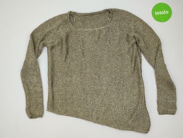 Sweter damski z długim rękawem - Kolor: beżowo‑złoty, z delikatnym metalicznym połyskiem - Krój: prosty, lekko luźny - Dekolt: okrągły - Dół i mankiety: prążkowane ściągacze - Boki: krótkie rozcię...