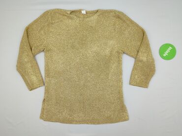 Sweter damski ALEO – złoty, z połyskiem - Klasyczny krój z okrągłym dekoltem i długim rękawem - Delikatnie połyskująca, metaliczna przędza w odcieniu złota - Wyraźna, ażurowo‑dzianinowa faktura - ...Stan: