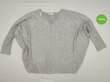 Szary sweter dzianinowy damski - Kolor: jasny szary - Krój: luźny, oversize z obniżoną linią ramion - Rękawy: 3/4, ażurowe (duże oczka) z elastycznymi ściągaczami - Przód: gładki, drobny splot - T...