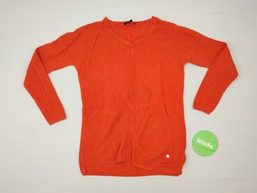 Sweter damski Esmara, pomarańczowy - Fason: klasyczny, z okrągłym dekoltem - Rękawy: długie - Wykończenia: ściągacze przy mankietach i u dołu; kontrastowa, jasna lamówka na końcach rękawów i na do...
