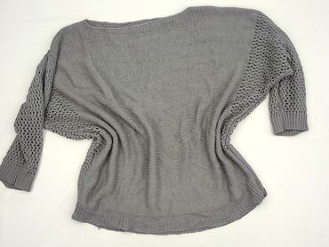 Sweter dzianinowy damski – jasnoszary - Fason: luźny, oversize z szerokimi rękawami typu kimono/dolman - Dekolt: łagodnie łódkowy - Długość: do bioder - Splot: wyraźna, miękka dzianina o drobnym, ...