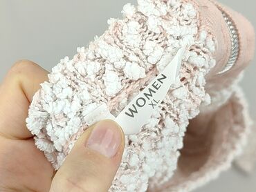 Sweter damski z warkoczowym splotem, rozmiar XL - Kolor: jasny pudrowy róż z delikatnym, połyskującym akcentem (metaliczna nitka) - Krój: klasyczny, okrągły dekolt; długie rękawy; rozcięcia po bok...