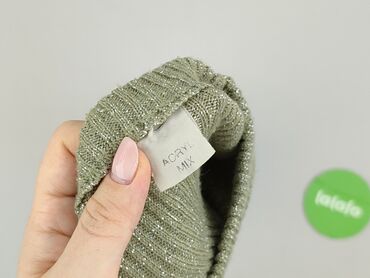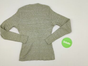 Zielony sweter damski z połyskiem, rozmiar S - Fason: klasyczny, z długim rękawem i półgolfem; ściągacze przy kołnierzu, mankietach i na dole. - Kolor/wykończenie: ciemna zieleń z delikatną, metal...