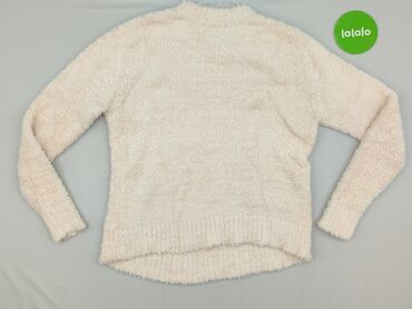 Sweter damski Bik Bok - Kolor: kremowy/ecru - Rozmiar z metki: XL - Fason: luźny, oversize z obniżoną linią ramion - Dekolt: w kształcie litery V - Rękawy: 3/4 z szerokimi, prążkowanymi mankietami...