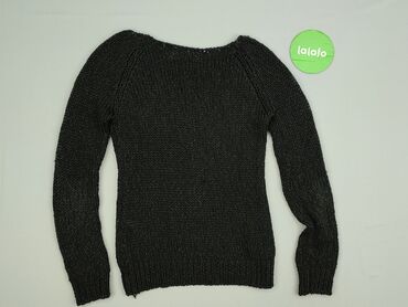 Czarny, dzianinowy sweter damski z połyskiem - Fason: dopasowany w talii dzięki szerokiemu, elastycznemu ściągaczowi; dłuższe ściągacze przy nadgarstkach. - Dekolt: szeroki, zaokrąglony (łódkowy/o...