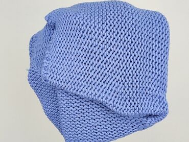 Sweter damski z golfem, kolor chłodny błękit/szaroniebieski. Miękka, pętelkowa faktura (bouclé) o wyraźnym, gęstym splocie. Luźniejszy, lekko oversize’owy krój z obniżoną linią ramion, rękawy 3/4–7...