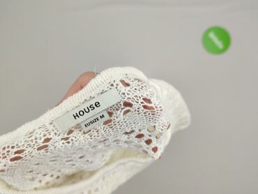 Sweter damski House Lovely Today - Rozmiar: S - Kolor: ecru/kremowy - Fason: dopasowany, z dekoltem w serek (V-neck) - Rękaw: 3/4 - Splot: fantazyjny, ażurowy z pętelkową fakturą i delikatną, błys...Ażurowy sweter House