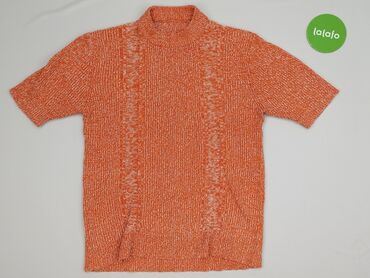 Sweterek damski z dzianiny – kolor ceglasty/pomarańcz rdzawa - Krój: prosta bluzka dzianinowa z krótkim rękawem - Dekolt: w kształcie litery V - Ażurowe zdobienia: pionowe pasy na przodzie oraz aż...