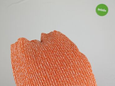 Dzianinowa bluzka w paski – pomarańczowo‑biała - Krój: luźny, krótki top bez zapięć, z krótkim rękawkiem - Wzór: poziome paski z przodu; tył gładki, pomarańczowy - Wykończenie: ściągacze przy deko...