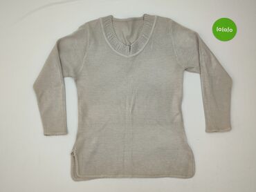 Sweter damski z dekoltem w serek – beżowy, dzianina o wyraźnym, grubym splocie. - Krój: klasyczny, lekko dopasowany, długość do bioder. - Dekolt: V-neck podkreślający szyję. - Rękawy: długie, zako...Stan: