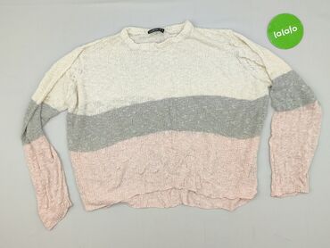 Damski sweter w paski - Klasyczny, biało-czarny wzór w poziome paski - Miękka, średniogruba dzianina o wyraźnym, prążkowanym splocie - Okrągły dekolt wykończony ściągaczem - Prosty, lekko luźny kr...Stan: