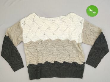 Ażurowy sweter SHEIN - Model: damski sweter z długim rękawem - Rozmiar z metki: EU S / US 4 / 36 - Skład: 100% akryl (z metki) - Wzór i kolor: pasy w falisty, ażurowy splot; odcienie bieli, brzosk...