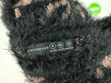 Sweter damski Atmosphere - Model: ażurowy sweter z długim rękawem - Kolor: czarny - Rozmiar z metki: EU 34 / UK 6 / FR 32 - Krój: raglanowe rękawy, okrągły dekolt, lekko wydłużony dół - Splot: dek...Stan: