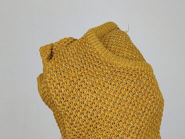 Sweter damski z metaliczną nitką – złoty - Krój: prosty, lekko wydłużony, z rozcięciami po bokach u dołu - Rękaw: długi - Dekolt: okrągły - Kolor i wykończenie: intensywny złoty połysk (przędza z ...Stan: