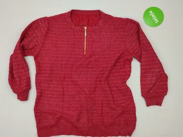 Czerwony sweter damski z połyskiem i krótkim zamkiem