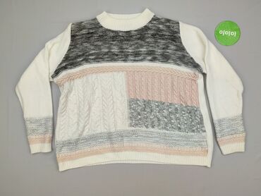 Sweter damski TU, rozmiar 20 (etykieta na metce). - Krój: luźny, lekko pudełkowy, rękawy 3/4 z szerokim ściągaczem. - Dekolt: okrągły, wykończony ściągaczem. - Splot: grubszy, strukturalny; dekora...Stan: