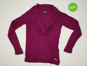 Fioletowy sweter damski House, rozmiar S. - Fason: dopasowany, z szerokim ściągaczem w pasie podkreślającym talię - Dekolt: szeroki, półokrągły - Rękaw: 3/4 ze ściągaczami przy mankietach - Dziani...