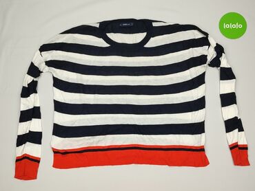 Sweter damski ZARA w paski - Model: cienki sweter z długim rękawem - Wzór: poziome pasy czarno‑białe - Dekolt: okrągły - Ściągacze: na dole i przy mankietach - Skład materiału (metka): 83% wiskoza...