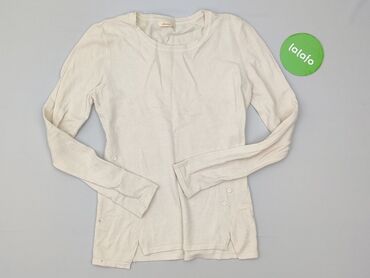 Sweter damski z dzianiny, ecru/kremowy, z długim rękawem. Cechy: - klasyczny, okrągły dekolt - ozdobne rozpinanie na obu ramionach: po trzy guziki po lewej i prawej stronie ułatwiające zakładanie ...Stan: