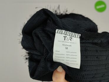 Czarny sweter damski TOM & ROSE (T&R) - Rozmiar: L - Fason: dopasowany, dekolt w serek - Rękawy: długie, zakończone szerokim, prążkowanym ściągaczem; dolny brzeg także ze ściągaczem - Materiał: 84%...
