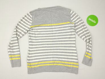 Sweter damski Pins and Needles, rozmiar S - Fason: luźny, z okrągłym dekoltem i długim rękawem - Dzianina o wyraźnej, ażurowej strukturze “bouclé” - Wzór: poziome pasy w kolorach zielonym, niebies...