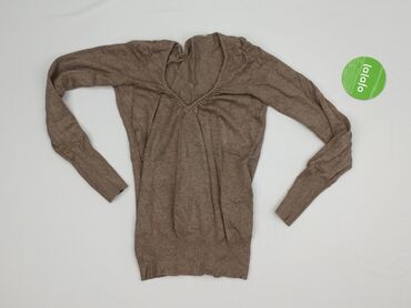 Sweter damski Made in Italy z długim rękawem - Kolor: chłodny brąz/mokaccino - Przód zdobiony złotymi, nieregularnymi kropkami/nadrukiem w stylu splash, tył gładki - Okrągły dekolt - Lekka, miękka...Stan: