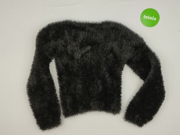 Czarny, puszysty sweter damski z długim rękawem. - Krój: klasyczny, proste rękawy, okrągły dekolt - Materiał: miękki, „włochaty”/futerkowy akrylowy miks (przyjemny w dotyku, lekko elastyczny) - Ko...