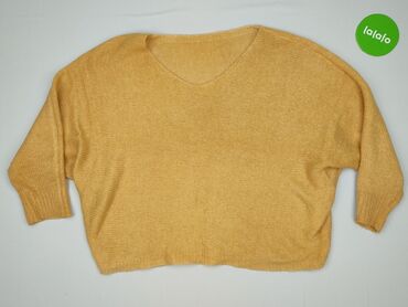 Sweter damski, dzianinowy, musztardowy - Fason: oversize z reglanowym rękawem - Rękawy: długie, zakończone ściągaczem - Dekolt: okrągły - Splot: gruby, mięsisty, równy - Dół: lekko zaokrąglony - K...