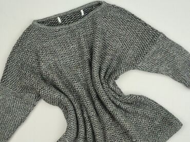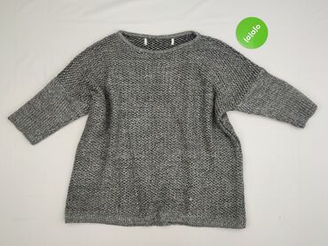 Szary sweter dzianinowy damski - Kolor: jasny szary - Krój: luźny, oversize z obniżoną linią ramion - Rękawy: 3/4, ażurowe (duże oczka) z elastycznymi ściągaczami - Przód: gładki, drobny splot - T...