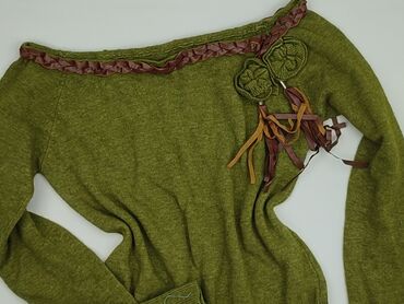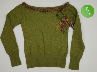 Ażurowy sweter damski Janina - Rozmiar: EU 36 (IT 40, FR 38) – z metki - Kolor: oliwkowa zieleń - Fason: lekko luźny, z ściągaczem na dole; rękaw długi raglanowy - Dekolt: okrągły - Dzianina: cien...Stan: