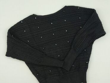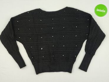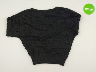 Czarny sweter z dzianiny, damski, rozmiar XS (EU XS / US XS). - Krój prosty z długim rękawem - Delikatnie podwyższona stójka przy szyi - Cienka, elastyczna dzianina o drobnym ściągaczowym splocie ...