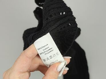 Sweter damski BASIC, rozmiar M - Kolor: czarny - Fason: klasyczny sweter z okrągłym dekoltem - Splot: wyraźny warkoczowy (front i rękawy), gładki tył korpusu - Materiał: 50% bawełna, 50% akryl (in...