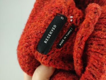 Czerwony sweter/bluzka damska Reserved Knit - Marka: Reserved (linia Knit) - Rozmiar z metki: S - Krój: luźny, nietoperz (szeroka góra, węższy dół) - Rękaw: 3/4 - Dekolt: łódka - Detal: ozdobne, w...