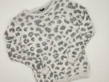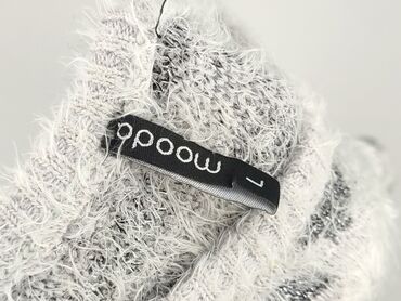Damski sweter z dzianiny melanżowej - Rozmiar: L (na metce) - Kolor: czarno‑szary melanż - Krój: klasyczny, okrągły dekolt, długie rękawy, ściągacze przy mankietach i u dołu - Motyw: duża naszyta s...