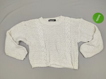 Sweter damski, beżowy, dzianinowy - Krój: krótki (crop), z długim rękawem - Dekolt: okrągły - Rozmiar z metki: 38 - Skład materiału: 73% akryl, 15% poliester, 12% wełna - Faktura: grubszy, luźny s...